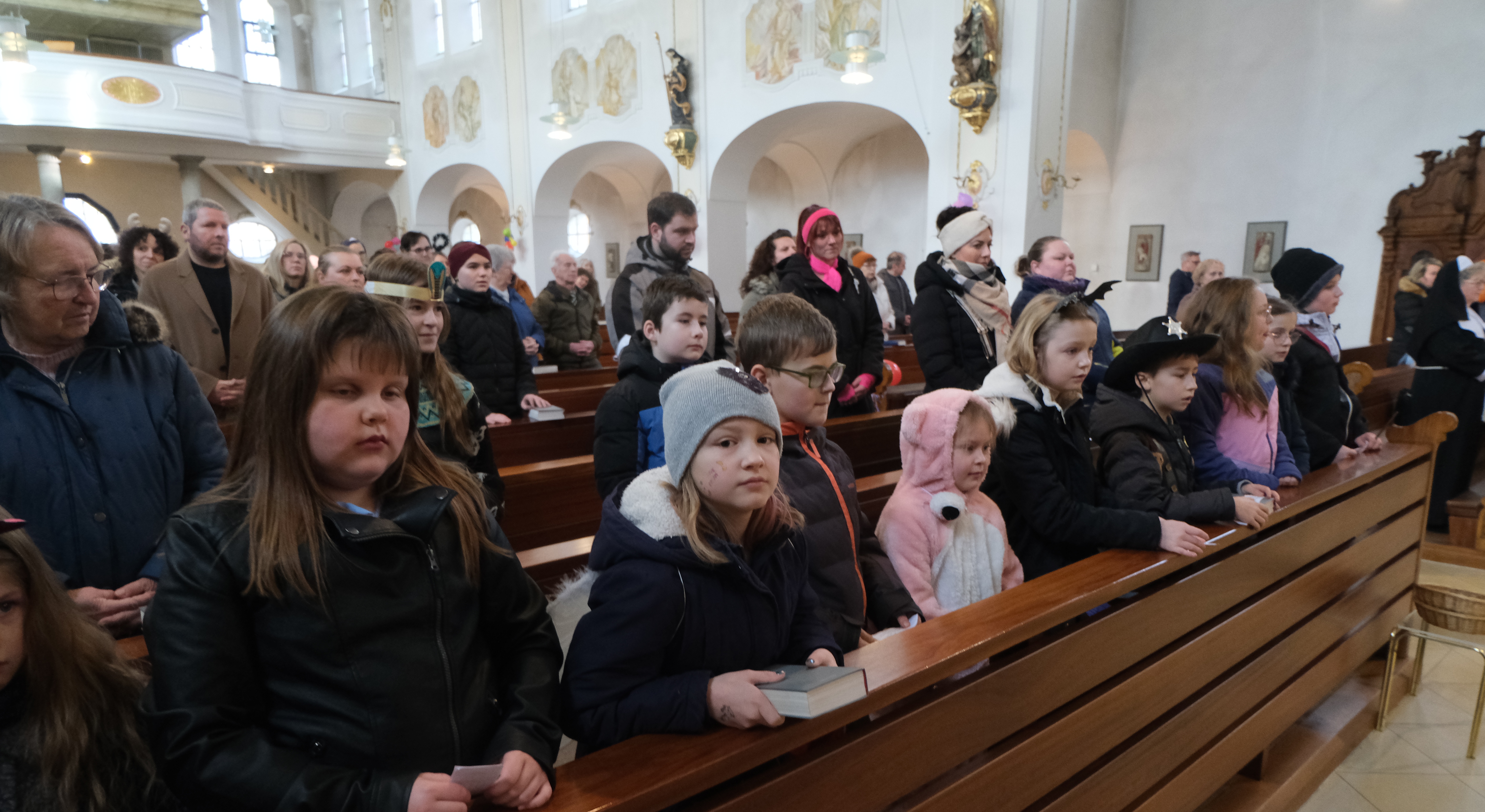 Es war für Pfarrer Max Früchtl eine besondere Ehre, die Familien mit ihren Kindern, die Erstkommunionkinder, Gefirmte und junge Leute zum Familiengottesdienst am Faschingssonntag in der Pfarrkirche St. Johannes der Täufer zur Mitfeier einzuladen. Die Mädchen und Buben durften im Faschingskostüm und maskiert kommen. Freudig eingestimmt hatte die Eucharistiefeier Elisabeth König von den Kirchenmäusen, die ebenfalls kostümiert auftraten.