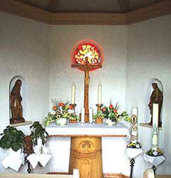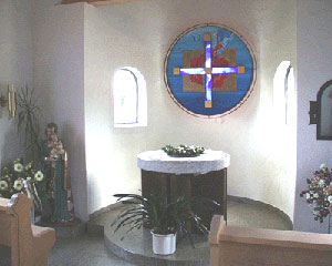 Die nächsten Bilder zeigen den Altarraum der St. Johannes-Kapelle und das Kreuz im Altarraum.