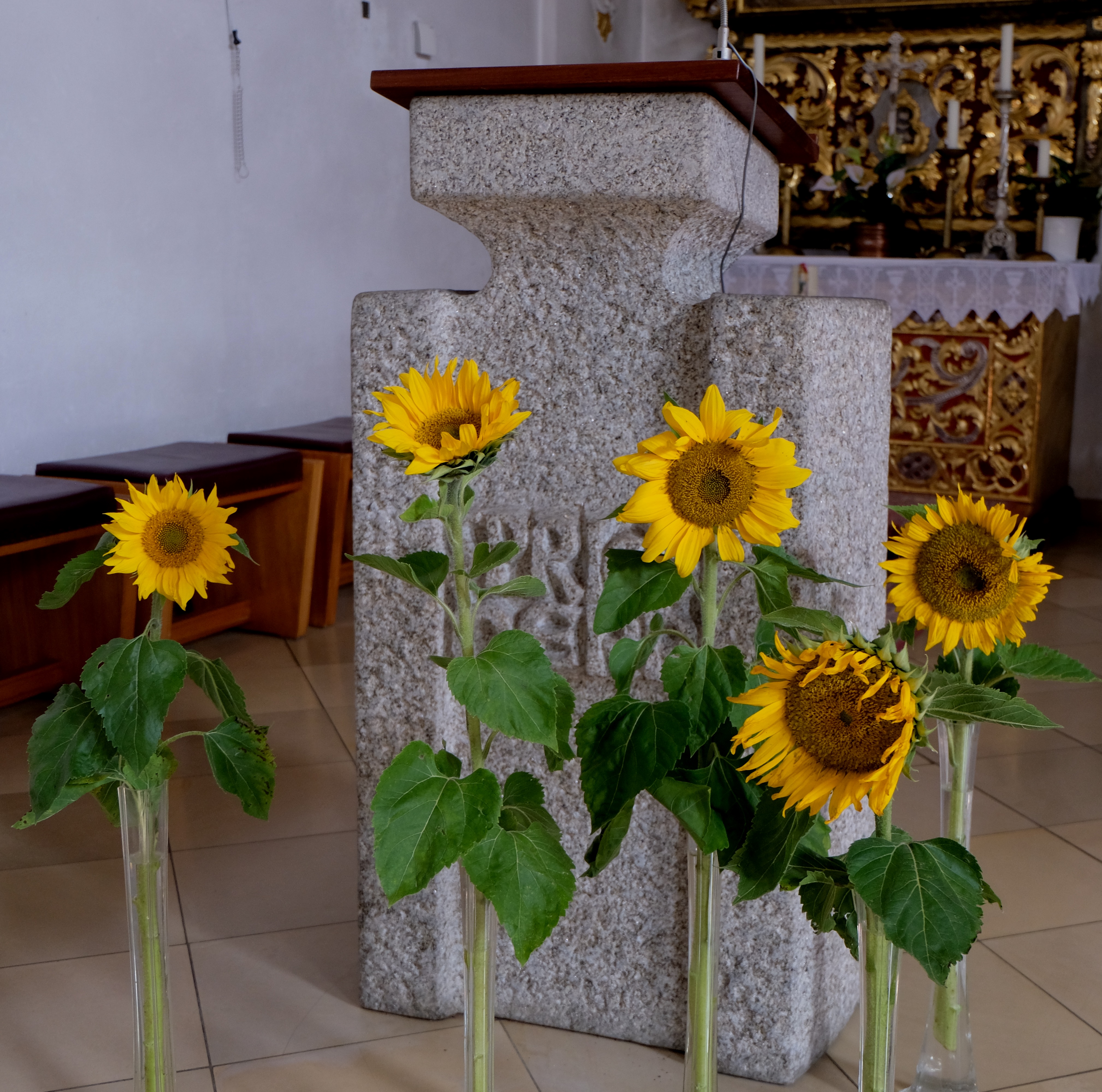 Pfarrer Max Früchtl ist geradezu begeistert, einmal über diesen freiwilligen, kirchlichen Dienst der Familien Noetzel und Rast, zum anderen über das schöne und imposante Kunstwerk im Altarraum der Kirche. In der Eucharistiefeier am Sonntag hatte dies der Pfarrer in seiner Festpredigt herausgestellt und bekräftigt, dass an Gottes Segen alles gelegen sei. Der Erntealtar sei Ausdruck des Dankes dafür.