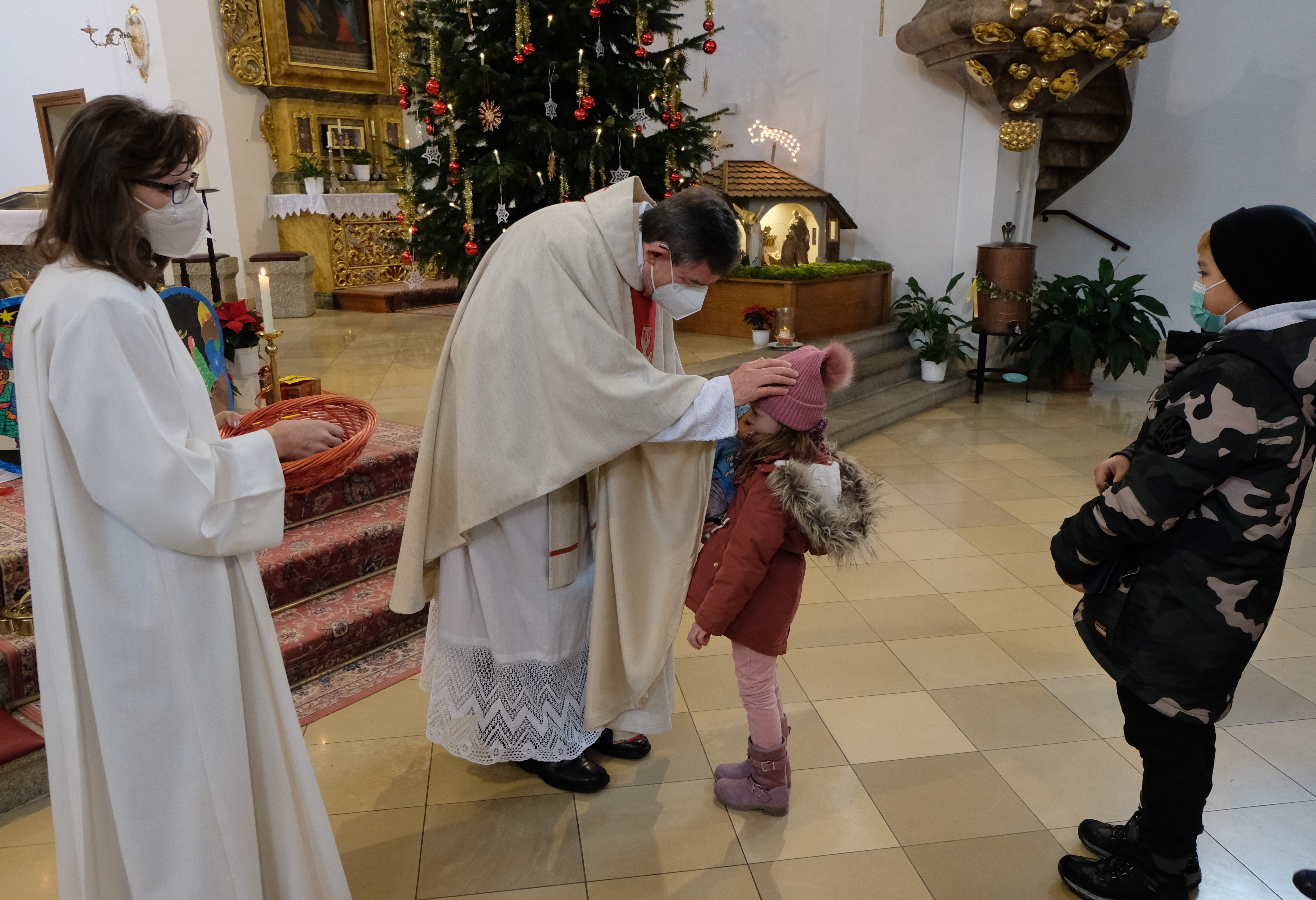 Viele Eltern kamen mit ihrem Nachwuchs der Einladung nach und nahmen an der Eucharistiefeier teil. Zum Ende des festlichen Gottesdienstes der von den Geschwistern Franz Seiz und Marion Elling, Jörg und Katrin Oppitz musikalisch und gesanglich gestaltet wurde, versammelten sich die Kinder mit ihren Eltern an den Stufen des Altars neben Christbaum und Krippe. Für die Kinder war es etwas ganz Besonderes und bisher Einmaliges, ganz vorne in der Kirche sein zu dürfen. Pfarrer Früchtl segnete jedes Kind. Den kleinen Knirpsen sagte er: „Ich verkündige euch große Freude: heute ist euch der Retter geboren“. Dazu gab es ein kleines Bildgeschenk. In seiner eindrucksvollen Predigt bezeichnete der Pfarrer die Familie als wichtigen Teil der Lebensgestaltung und des Zusammenhalts. Das Fest der Heiligen Familie sei eine wichtige Botschaft in einer Welt voller Gegensätze.