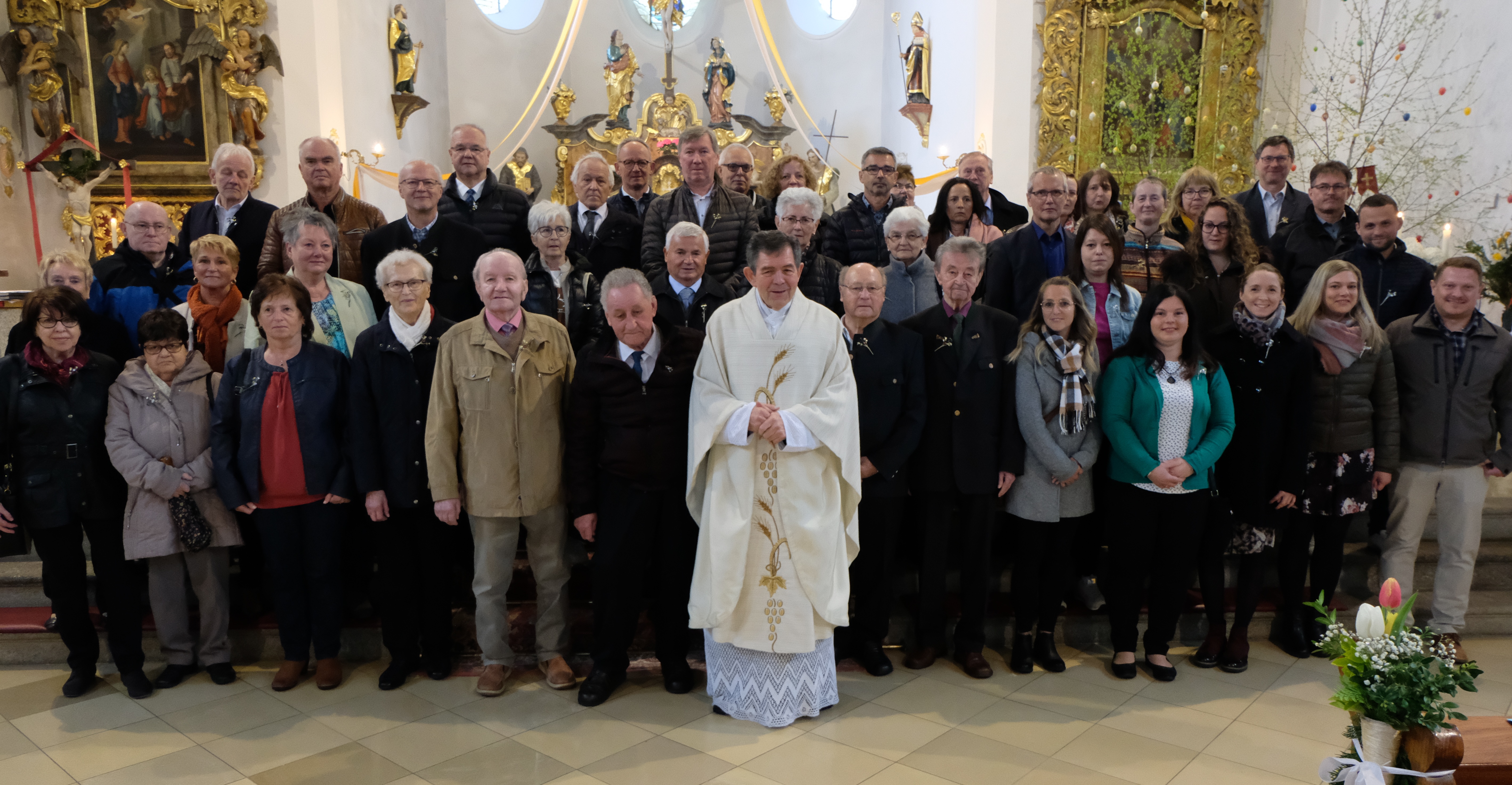 Die Pfarrei St. Johannes der Täufer stand am Weißen Sonntag ganz im Zeichen der Jubelkommunion für Frauen und Männer, die vor 25, 50, 55, 60, 70 und mehr Jahren in ihrer Heimatkirche an den Tisch des Herrn traten und die Erstkommunion empfangen haben. Es war zugleich eine freudige Wiedersehensfeier, zumal viele Jubilare teilnahmen, die ihren Heimatort Floß schon vor langer Zeit verlassen und ihre Zelte woanders aufgeschlagen haben.