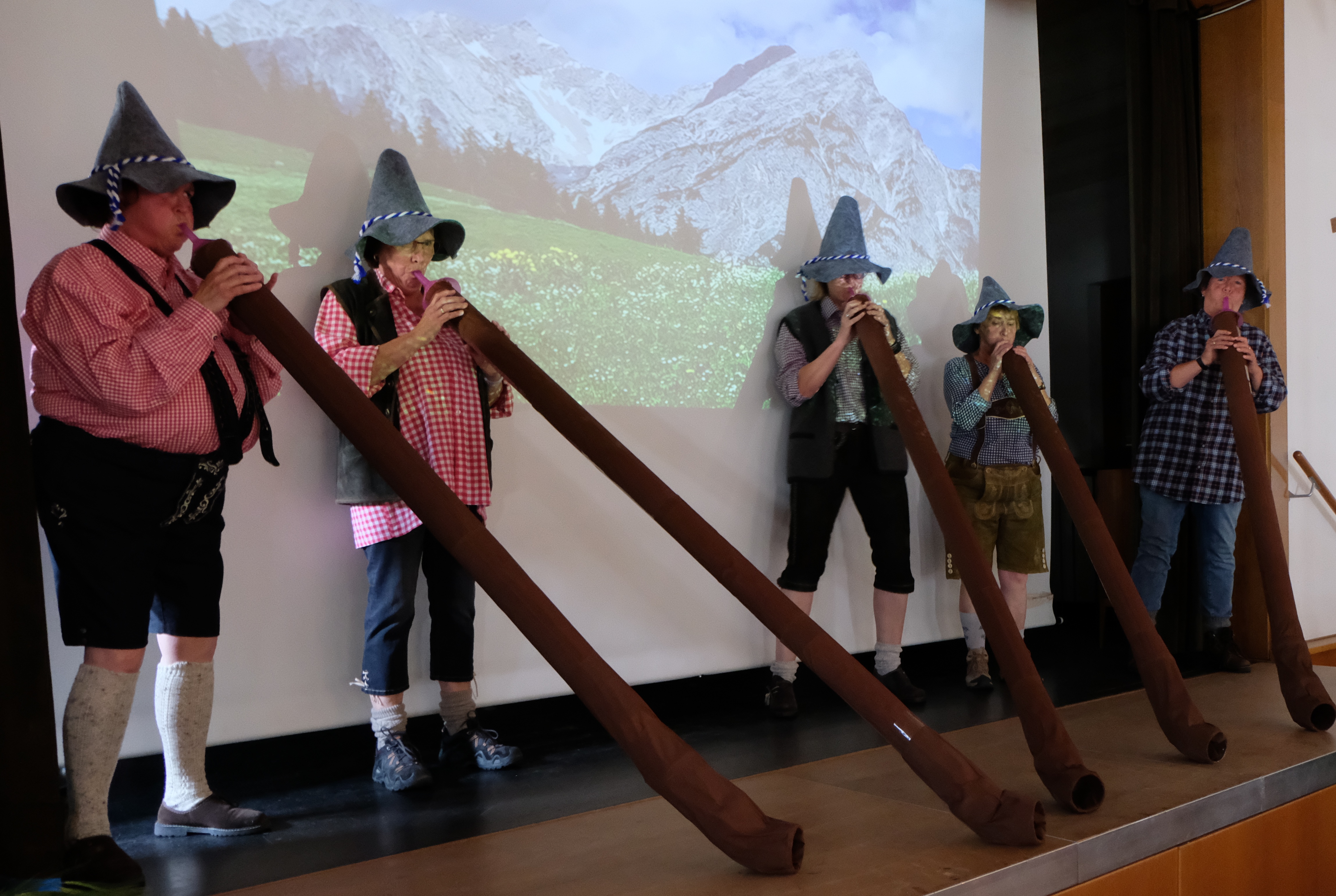 Nicht vergessen wurden die Geburtstagskinder vom Januar bis Juni dieses Jahres, die mit schönen Geschenken und einem Geburtstagsständchen von Brigitte und Vroni überrascht wurden. Das Dankeschön dafür blieb durch Brigitte Beer und Fred Lehner nicht aus. Der Nachmittag hatte mit dem Auftritt des Teams als „Hoslstaträdara“ und Brigitte und Vroni weitere unterhaltsame Höhepunkte. Dazu durfte das Kufsteinlied nicht fehlen. Eine abschließende Brotzeit rundete einen gelungenen Nachmittag voller Freude und auf ein Wiedersehen in vier Wochen ab.