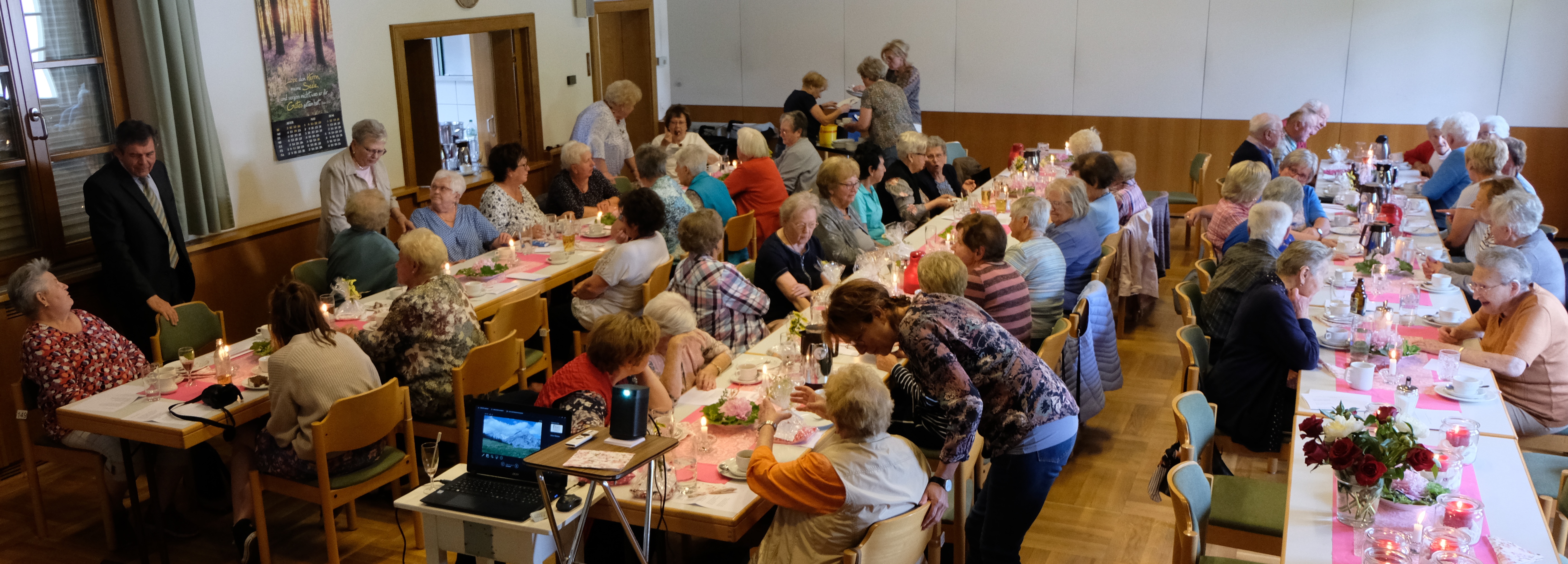 Ein freudiges Wiedersehen, eine angenehme gesellschaftliche Unterhaltung, dazu prächtige Auftritte von Leiterin Marlene Noetzel und ihrem Team, verkürzten die knapp drei Stunden an diesem Nachmittag. Mit einem guten Schluck von der Bowle prosteten man sich freudig zu. Kräftig eingestimmt wurde in das „Dankeslied für diesen schönen Tag“ Wieder machte sich Marlene Noetzel viel Mühe, rief gekonnt das Weltgeschehen mit all den Ereignissen, nicht nur die Coronazeit und den Krieg in der Ukraine, in den vergangenen zwei Jahren in Erinnerung. Auch die kommunalen Geschehnisse und alles was im kirchlichen Leben geschah, ließ die Leiterin bei ihrer Rückschau Revue passieren. Den verstorbenen Mitgliedern Betty Kraus, Rosa Gleißner, Helmut Kreiner, Anna Bäuml, Traudl Stangl, Hermine Völkl, Anna Grünwald und Berta Stich galt beim Entzünden einer Kerze ein stilles Gedenken.