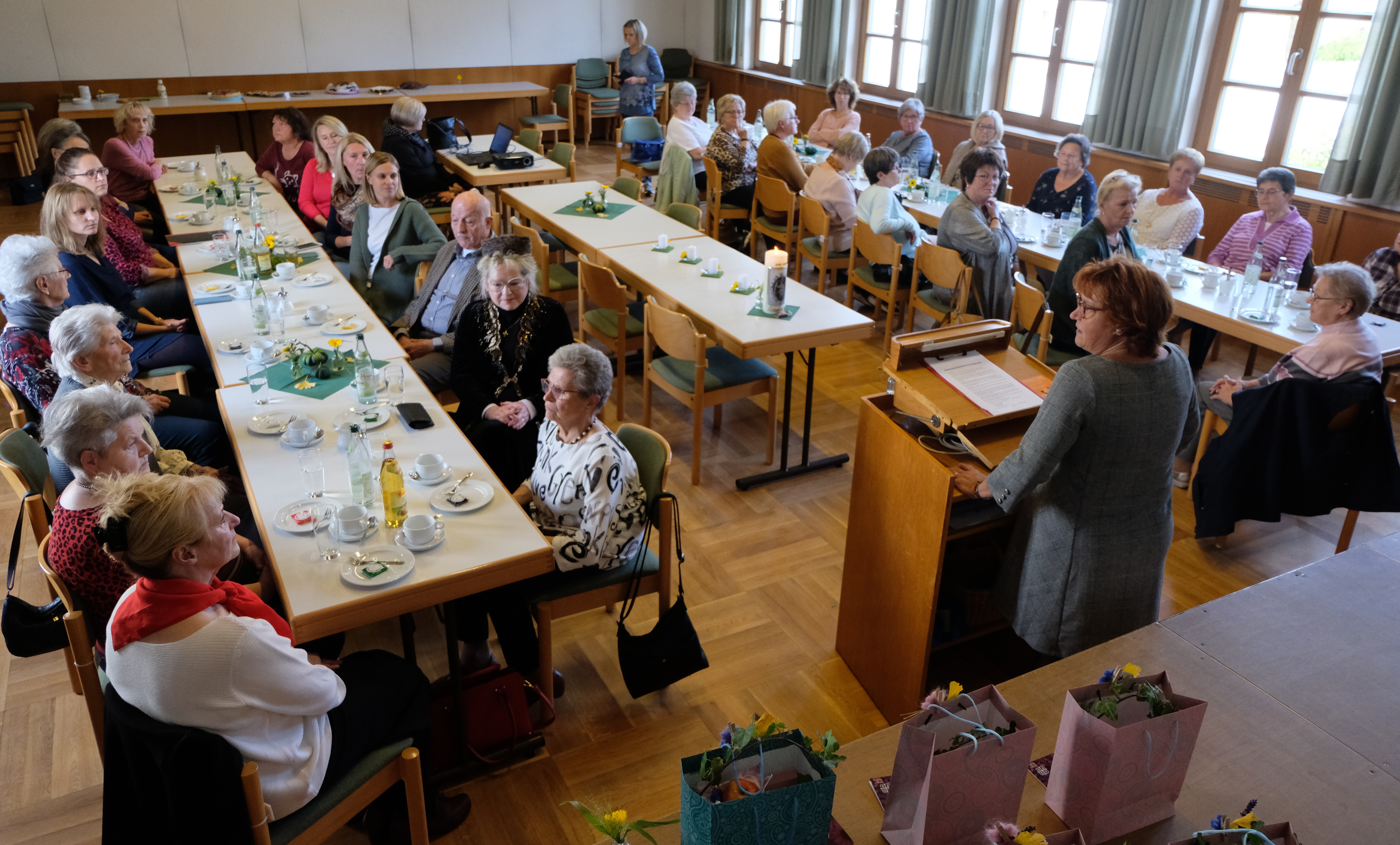 Ein Bibelwort aufnehmend, dass der Mensch nicht vom Brot allein, sondern auch von jedem Wort aus dem Munde Gottes lebt, leitete die sichtlich erfreute Vorsitzende die „freundliche Begegnung“ ein. Der Mensch lebe von der Freundlichkeit in der Gemeinschaft, der Liebe untereinander, die wir so nötig brauchen, der Freude und dem Dank mit Gott der uns entgegengebracht wird. Mit diesen Worten sagte die Vorsitzende durch Überreichung von Ehrennadeln und Präsente an die Mitglieder, die 20, 40, 45, 50 und 60 Jahre der Frauengemeinschaft angehören, ein Dankeschön.