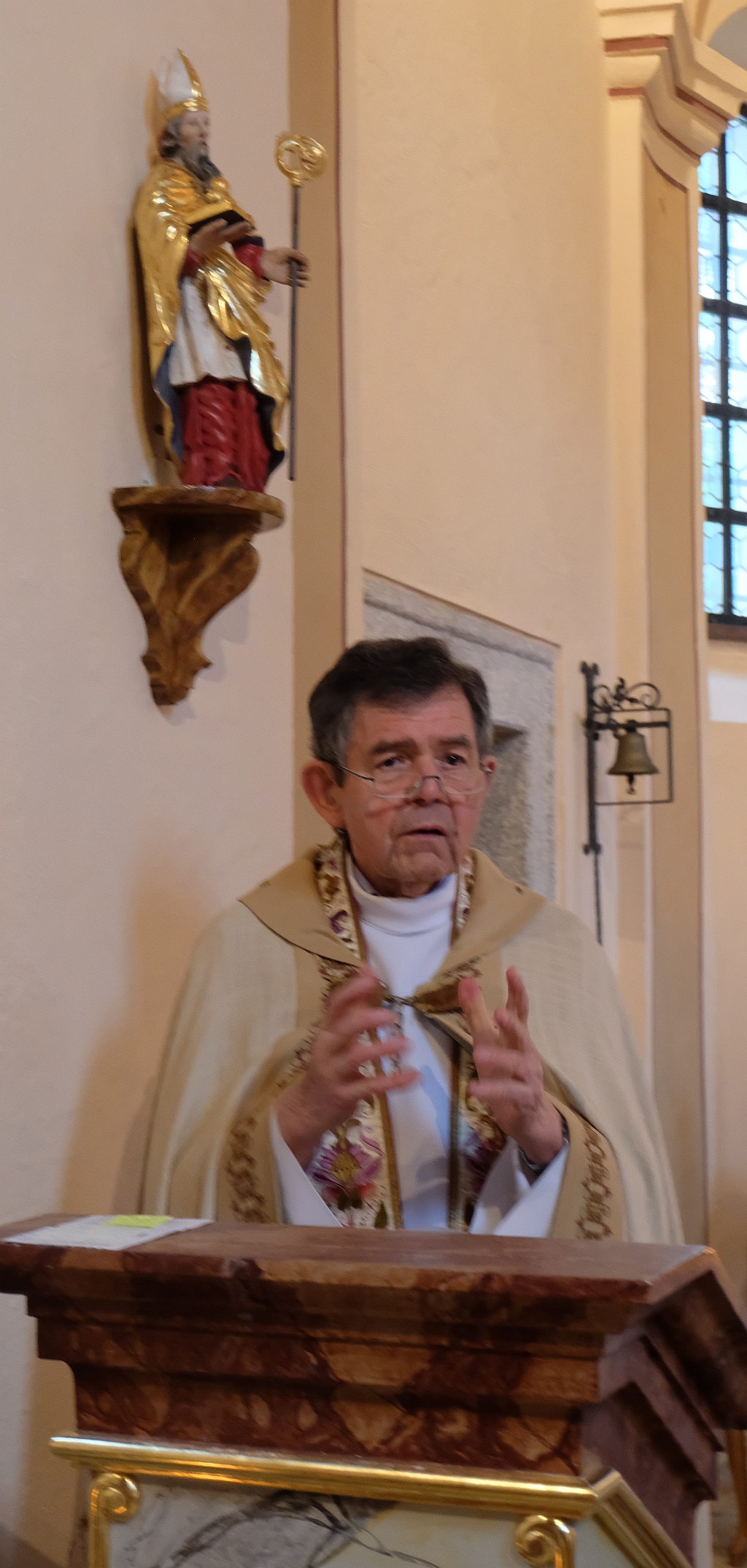 Die Gläubigen stimmten zu Beginn der Eucharistiefeier in das Lied: „Ein Haus voll Glorie schauet“ ein. Nicht umhin kam der Pfarrer, den Gläubigen die bewegende Geschichte der St. Nikolauskirche, sie wurde am 9. November 1723, also vor 300 Jahren, benediziert, aufzublättern. Pfarrer Richard Bartmann und Pfarrer Josef Most haben sich zur früheren Zeit für die Sanierungen in der Kirche große Verdienste erworben. Jetzt können wieder Gottesdienste und Andachten, auch kirchliche Trauungen, abgehalten werden, berichtete der Pfarrer. Die im Vorjahr aufgeschobene 300-Jahrfeier werde in jedem Fall in diesem Jahr nachgeholt. Die Messfeier endete mit dem Nikolauslied. Dann traten die Gläubigen den Weg zur Pfarrkirche an, wo der Geistliche den Wettersegen spendete. Es war ein Freudentag und der 8. Mai 2024 wird als erster Tag der Wiederbenützung der Kirche nach ihrer Sanierung in die Kirchengeschichte eingehen.