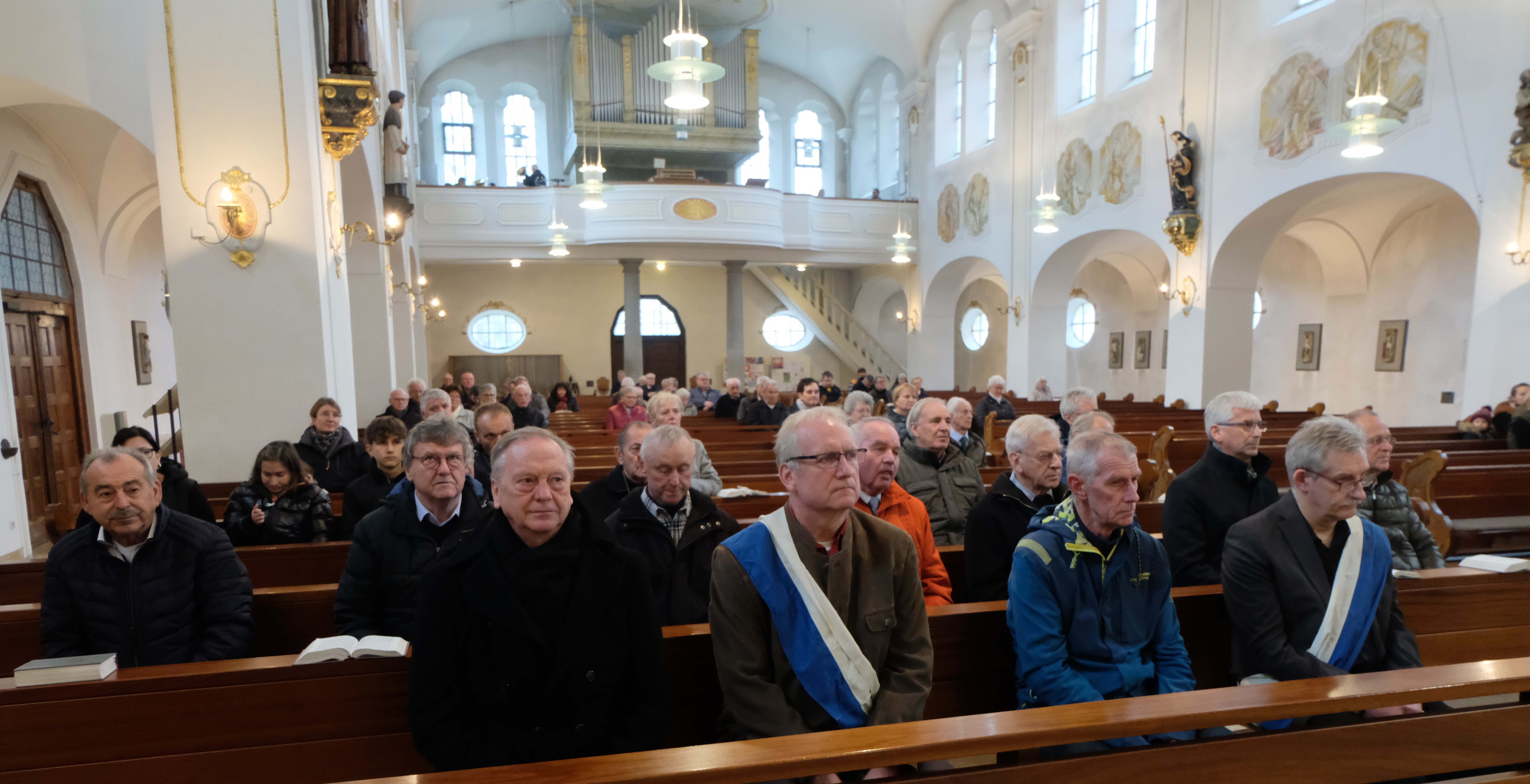 So wie man es vom Männerverein gewohnt ist: wenn Feste und Feiern begangen werden, dann spielt die Blasmusik mit. Der Kirchenzug vom Pfarrheim St. Josef mit den Fahnenabordnungen der kirchlichen Vereine zum festlich geschmückten Gotteshaus und die musikalische Gestaltung der Eucharistiefeier durch festliche Klänge prägten den Festtag.