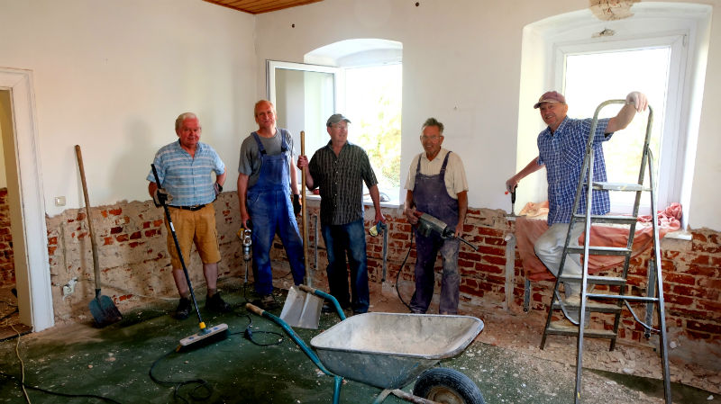 Sie halten Wort, packen kräftig mit an und helfen der katholischen Kirchengemeinde St. Johannes der Täufer, damit ein anstehendes Bauprojekt seiner Vollendung zugeführt werden kann. Seit 30. Juni legen die Männer und Mitglieder des Katholischen Männervereins unter Ehrenvorsitzenden Helmut Weig als Organisator und zweiten Vorsitzenden Martin Landgraf Hand an und führen anstehende Sanierungs- und Restaurierungsarbeiten im Herz-Jesu-Haus durch. Seit Aufgabe der letzten Mietwohnung, dem Auszug der Caritas-Station und Aufgabe der Kirchenbücherei steht das Haus leer. Pfarrer Max Früchtl hat seine eigenen Vorstellungen. Er will das von Geistlichen Rat, Pfarrer Jakob Raß im Jahre 1907 erbaute Gebäude zu einem „Haus der Begegnung“ werden lassen.