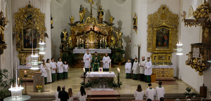 Festgottesdienste ohne Orgelmusik und Kirchenchor sind für die katholischen Christen nicht denkbar. Wie wertvoll eine musikalische und gesangliche Gestaltung der Gottesdienste sein kann, zeigte die Chorgemeinschaft mit Leiter Florian Löw, der auch an der Orgel spielte. Der Chorleiter wählte das „Kyrie“ und das „Agnus Dei“ aus der „Missa in F“ von Helmut Wolf (1954), dazu beim Gloria das „Gloria, Ehre sei Gott“ von Kathi Stimmer-Salzeder (1957). Zum Offertorium sangen Chor und Gemeinde „Wer glaubt, ist nie allein“ von Christian Dostal (1967). Zum Abschluss zeigte der Kirchenchor mit dem Lied: „Gott mag Segen“ von Rodney Bambrick (1927) sein ganzes Können unter einer souveränen Leitung von Florian Löw. Der Jubilar hatte für diese Aufführungen als Geburtstagsgeschenk mit einem lautem Vergelt’s Gott Dank gesagt.