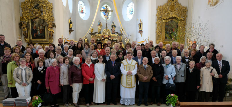 Seine Predigt hatte Pfarrer Früchtl ganz auf die Jubilare abgestellt. Dieses Mitfeiern in der Eucharistie gebe Kraft, Halt und Stärke fürs Leben und für den Glauben an Jesus Christus. Es werde wahre Kommune, die Gemeinschaft gepflegt und das sei gerade in der heutigen Zeit nötiger denn je. Der Geistliche warf die Frage auf, was die Menschen ohne Gott, ohne Religion wären. Die Jubilare bat er, auch weiterhin „Zeugnis, was Christ-Sein heißt“, zu geben. Die Fürbitten trugen Jubilare vor und zum Abschluss des Gottesdienstes sangen die Gläubigen nach dem Segen des Pfarrers: „Lobe den Herren“ und „Großer Gott, wir loben dich“.