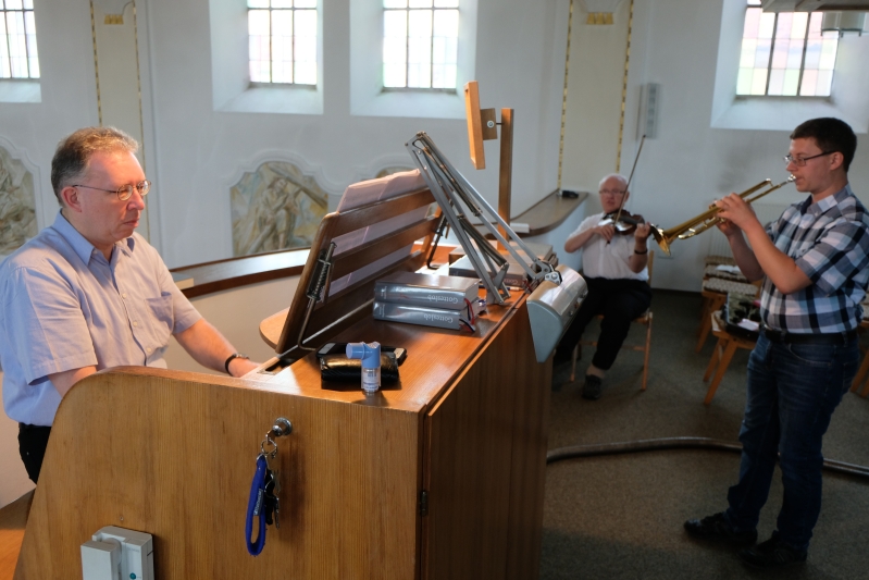 Die Instrumentalisten traten in dieser Besetzung erstmals auf und boten mit ihrer klassischen und modernen Kirchenmusik einen wahren Ohrenschmaus für alle Gottesdienstbesucher. Aufgeführt wurden Werke von Ludwig van Beethoven und Jean Joseph Moure. Erstmals erklangen auf Orgel und Trompete „Flosser Variationen“, die Andreas Bäumler zusammenstellte.