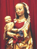 Unsere wertvollste Statue ist die Gotische Madonna aus dem Jahre 1487. Sie zeigt Maria mit dem Jesuskind, das wiederum den Schleier Mariens in der rechten Hand hält.